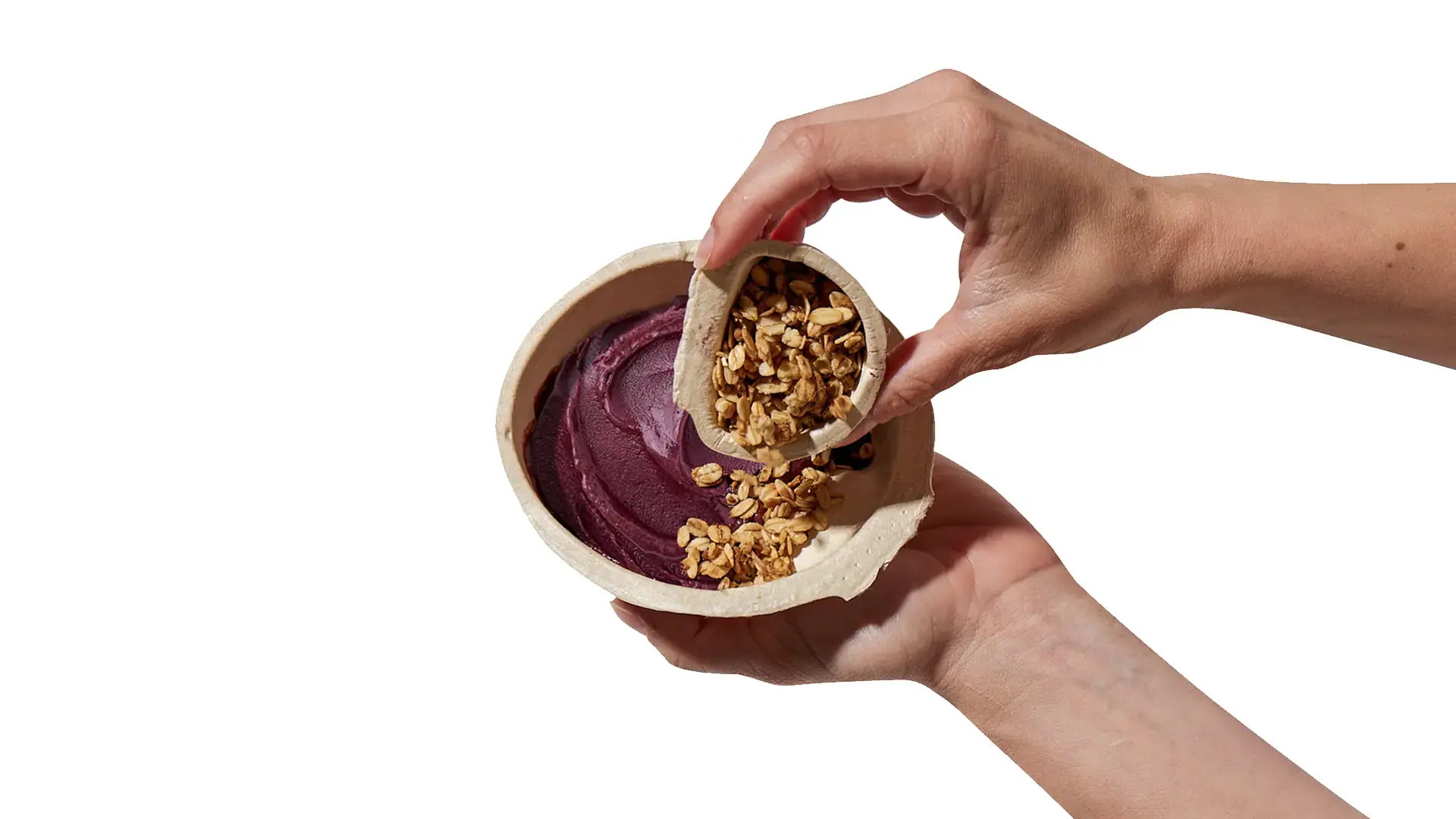 Our bowls are incredibly easy to enjoy. Simply remove the dry toppings cup, then thaw the bowl at room temperature for 15 minutes or microwave for 10–15 seconds. Peel off the paper seal and stir until smooth and creamy. Sprinkle on the dry toppings and customize with your favorite fresh fruit for the ultimate Açai bowl experience.